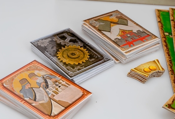 1 основной планшет 2 дополнительных планшета 5 планшетов ресурсов 5 планшетов местности 80 жетонов строений 5 жетонов займов 35 жетонов длинных дорог 20 наборов жетонов коротких дорог 3 памятки Карты 21 карта монументов 15 карт общих целей 14 карт для одиночной игры Буклет правил Картонный инлей